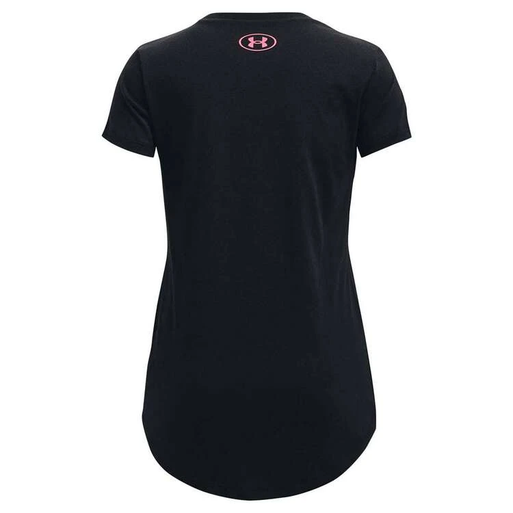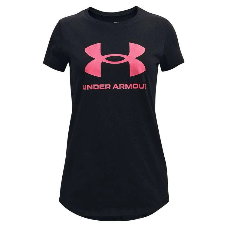 The Under Armour Girls Live Sportstyle Short Sleeve Tee is constructed from a soft cotton-blend to deliver all-day comfort. This short sleeve tee features the Under Armour logo on the chest and is cut with a dropped, shaped hem for a better fit. Great for young athletes.
