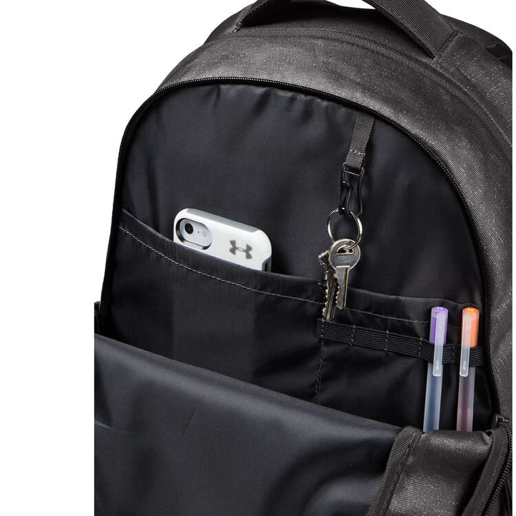 Keep organised and get through your daily hustle with ease with the Under Armour Hustle Signature Backpack. Built tough, the backpack is perfect for the gym, day trips and work with Under Armour’s Storm Technology delivers a highly water-resistant finish to ensures the rain won’t stop you from where you need to go. For comfort, a padded HeatGear shoulder strap keeps you sweat-free whilst on the go. Its abrasion-resistant bottom protects your gear from mud and puddles. Get your gear from A to B in classic UA style with the Under Armour Hustle Signature Backpack.