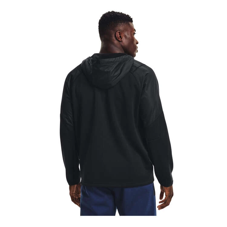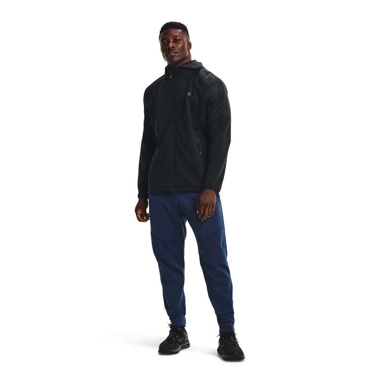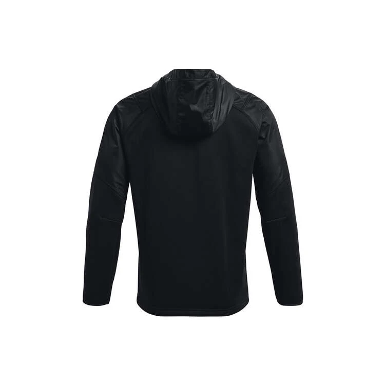 Ignore the wet weather while training outdoors in the Under Armour Men’s UA Essential Swacket. The outer shell features UA Storm Tech which repels water without weighing you down and is also resistant to wind for further protection from the elements. Featuring an adjustable 3-panel hood that keeps your head covered, you can also stash all your small essentials in the secure-zip pockets. The Under Armour Men’s UA Essential Swacket offers lightweight warmth and protection from harsh weather.