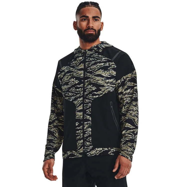 Don’t let the weather stop you from being active when wearing the Under Armour Men’s UA Unstoppable Print Jacket. Its lightweight construction features UA Storm Tech which repels water while also keeping it comfortable and breathable. The bungee adjustable hood has a mesh lining, keeping the airflow coming in while protecting you from the elements. Whether you’re out and about or training under the skies the Under Armour Men’s UA Unstoppable Print Jacket will have you raring to go.