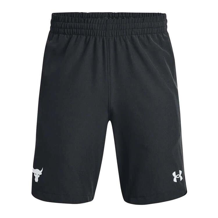 Gain the confidence and work ethic of the “The Great One” when wearing the Under Armour Project Rock Boys Woven Shorts. The shorts are crafted from lightweight woven fabric with 4-way stretch to keep you moving with ease. The material wicks away sweat to dry fast, and it has an elastic waistband for a distraction-free fit. Grab the bull by the horns the next time you train in the Under Armour Project Rock Boys Woven Shorts.