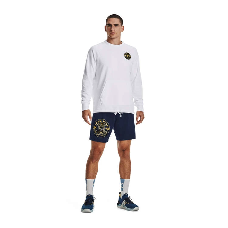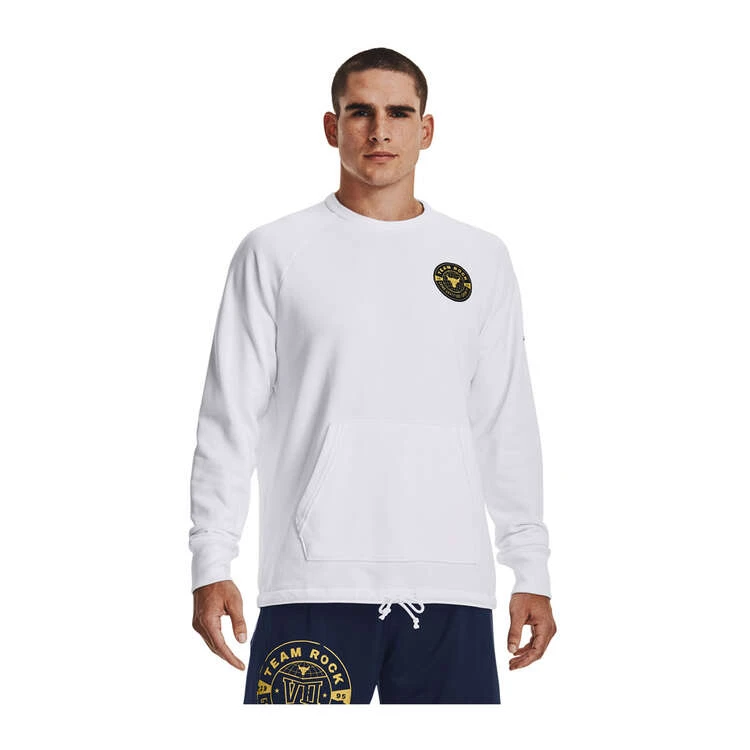 The Under Armour Project Rock Earn Greatness Men’s Sweatshirt is the ideal choice for reaching your training goals in cooler weather. Designed and developed by “The Great One” himself this UA Sweatshirt is made with lightweight and soft French Terry fabric offering up durability and comfort. It features a kangaroo pocket at the front, perfect for stashing your small valuables or warming up chilly hands, the bottom hem can also be adjusted to fit your needs. Reach all your training goals while wearing the Under Armour Project Rock Earn Greatness Men’s Sweatshirt.