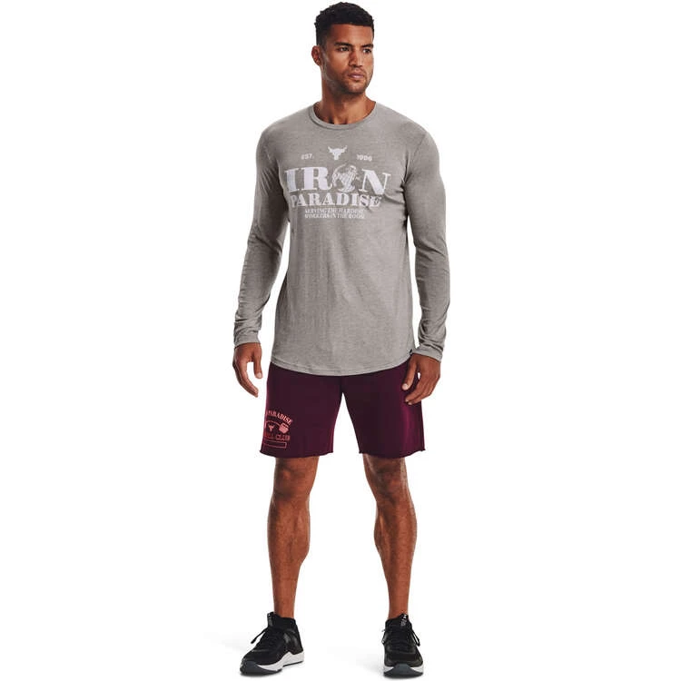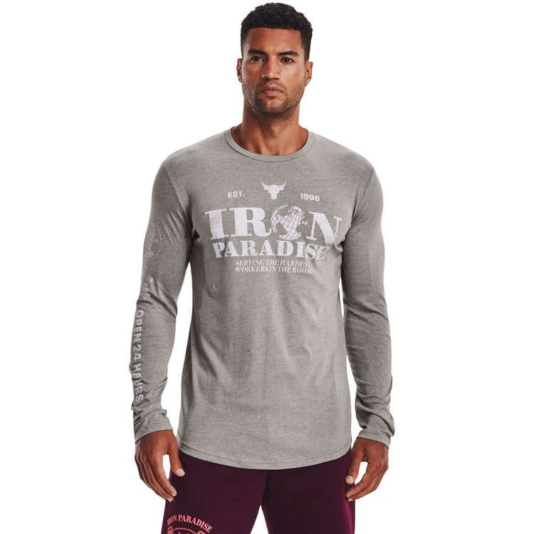 Push harder, be stronger, and show everyone what you’re made of in the Under Armour Project Rock Men’s Iron Paradise Long Sleeve Tee. Made with fitness enthusiasts in mind, this Project Rock tee is constructed with a comfortable Cotton blend to ensure you stay focused on your training and never back down from a challenge. Motivational graphics and a Project Rock signature bull graphic helps you build the belief that you can overcome the odds and achieve your best in the Under Armour Project Rock Men’s Iron Paradise Long Sleeve Tee.