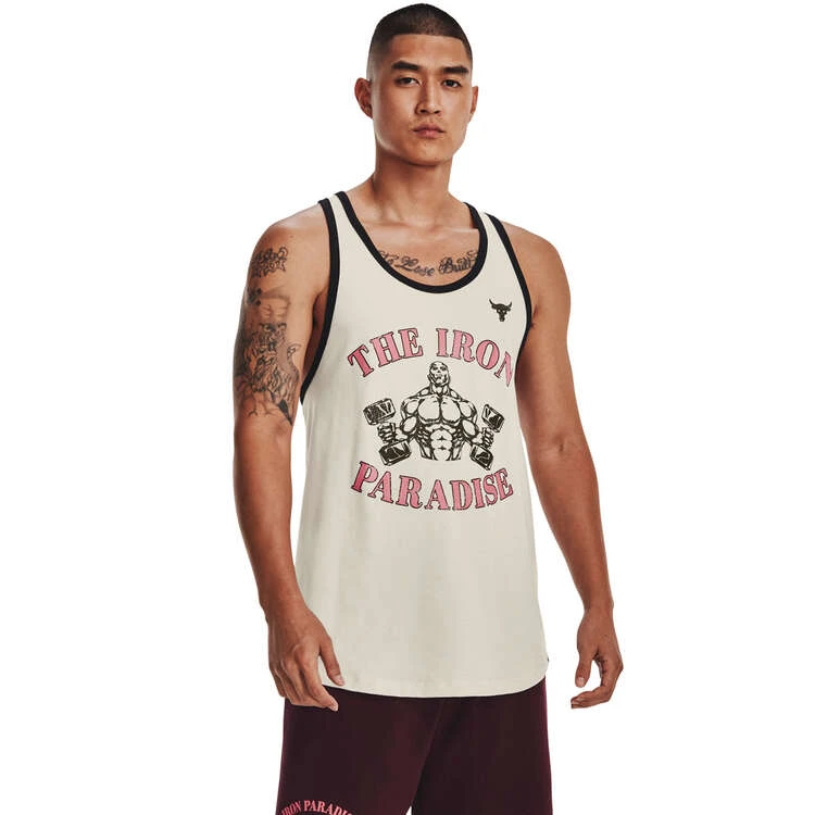 Embody The Great One and push past your limits in the Under Armour Men’s Project Rock Iron Paradise Tank. Project Rock builds its gear with superior comfort, ensuring you’re always ready to push yourself harder. A super-soft, cotton-blend fabric provides all-day comfort while keeping you cool and dry, dropped armholes give you a full range of motion during your training session. Complete with a Project Rock graphic print on the front that shows you’re ready to go the distance.