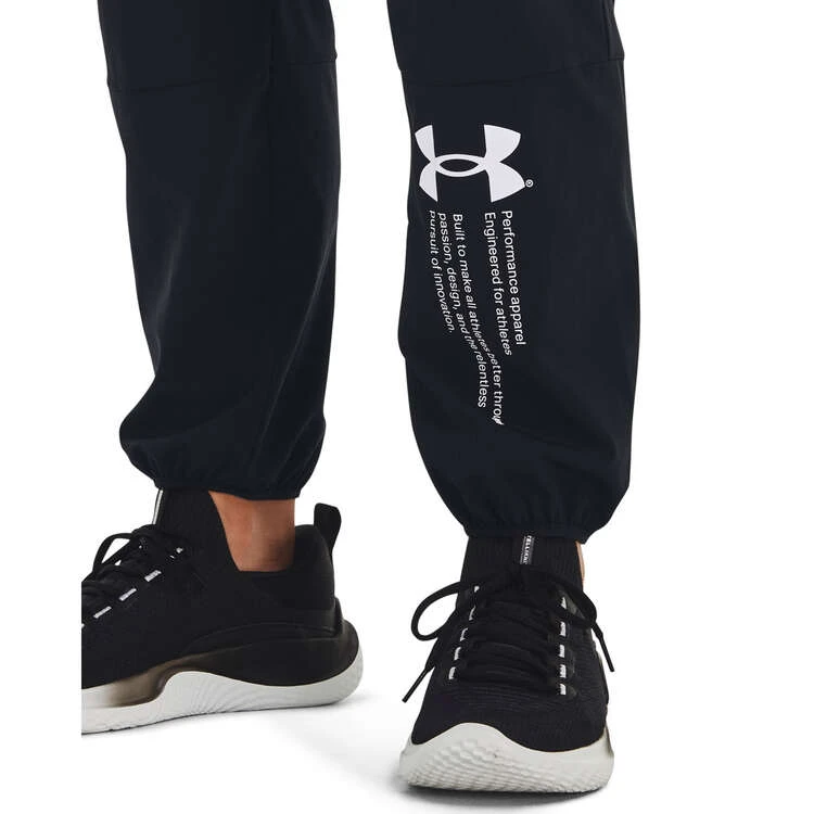 Perfect for layering up before training in the cooler months, the Under Armour Womens Woven Graphic Pants are made from a lightweight and durable fabric with UA Storm technology designed to repel water without sacrificing breathability. Featuring 4-way stretch material with an elastic waistband for added comfort, these pants have open hand side pockets that allow for small storage.