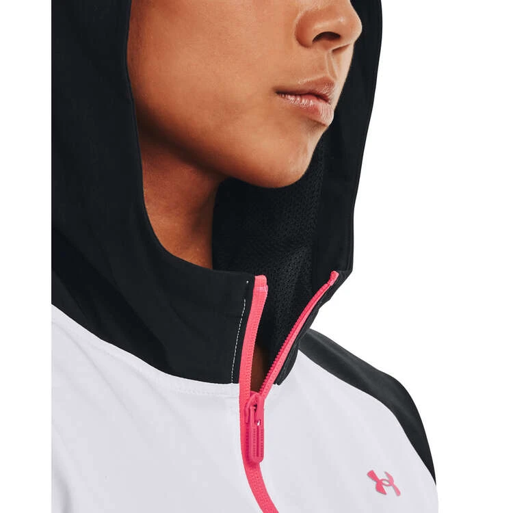 Don’t let the elements get in the way of your training schedule with the Under Armour Woven Half Zip Hoodie. Made with UA Storm technology, the hoodie is designed to keep you dry when it starts to rain without sacrificing breathability. Its lightweight fabric features 4-way stretch technology to allow you to move freely as you run, train or walk without weighing you down. Get moving in the Under Armour Women’s Woven 1/2 Zip Hoodie, activewear that won’t let you down.
